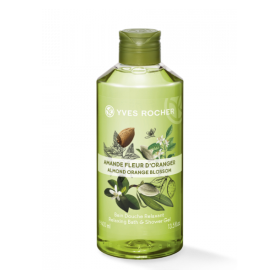 ИВ РОШЕ ДУШ ГЕЛ БАДЕМ И ПОРТОКАЛОВ ЦВЯТ 400МЛ - За моментите на пълен релакс в банята, използвайте душ гел Yves Rocher Plasiris Nature Maxi с етерично масло от портокалов цвят (в аромата) и екстракт от бадем. Хидратира и подхранва кожата, почиства нежно, без да изсушава. Оставя неустоим аромат и усещане за свежест и чистота през целия ден. Биоразградима формула с 92% естествени съставки в рециклирана бутилка. Дерматологично тестван. Не съдържа парабени и етоксил.