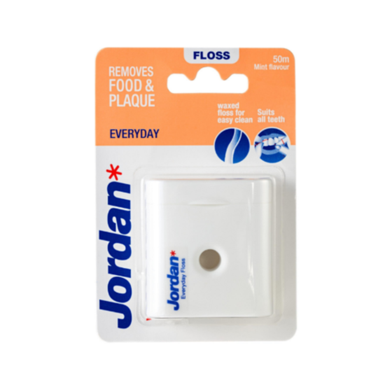 JORDAN КОНЕЦ ЗА ЗЪБИ ЗА ЕЖЕДНЕВНА УПОТРЕБА 50М e восъчен конец за зъби за ежедневна употреба. Той е с аромат на мента, за да осигури свеж дъх след всяка употреба. Препоръчва се за хора с нормално междозъбно пространство.