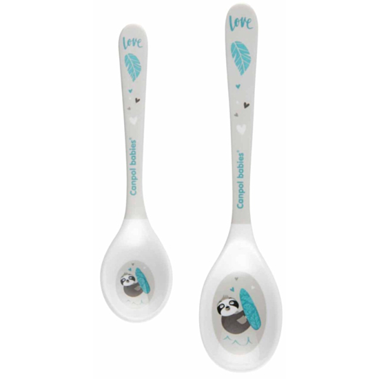 Меламинови лъжички за хранене са предназначени за деца над 9 месеца. Комплектът включва една малка и една по-голяма лъжица, заоблените им форми не дразнят деликатните венци на детето. Цветният дизайн на дръжките привличат вниманието на детето и правят храненето по-забавно. Canpol babies Меламинови лъжички за хранене не съдържат бисфенол А.