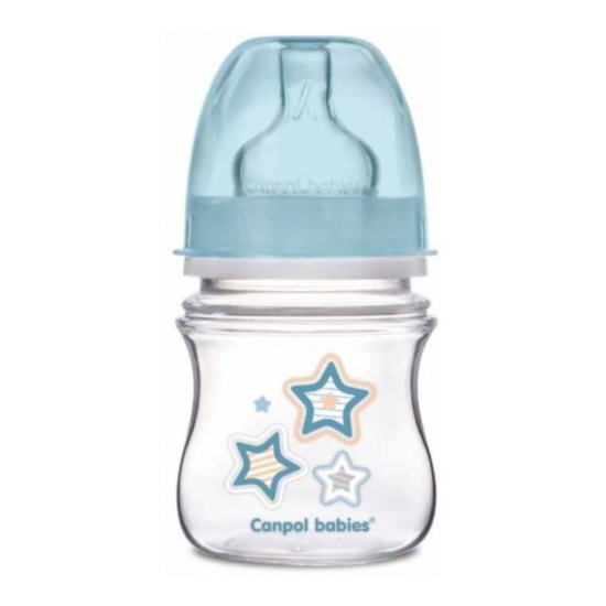 Шишето от Canpol e с широко гърло и със специално създадена клапа, която ще осигури безпроблемна вентилация на биберона и ще намали риска от появата на колики.