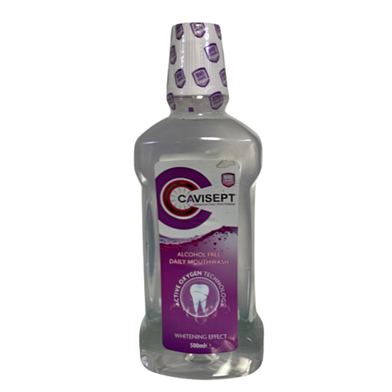 Кависепт вода за уста 500мл е продукт с иновативна формула с активен кислород, която ефективно подпомага здравето на венците и премахването на плака. Също така защитава от зъбен камък и укрепва венците, придавайте свеж дъх. Не съдържа алкохол. Има избелващ ефект.