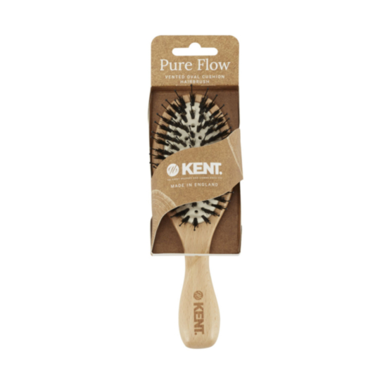 KENT Pure Flow 1 е овална дървена четка, с отвори и с комбинирани игли от естествен косъм и пластмаса 14/19mm дължина, 9 редна. Тя е иновативна четка с отвори в корпуса за вентилация на топлия въздух при сушене, като съкращават времето. Комбинацията с естествен косъм и пластмасови игли спомага за лесно разресване, изглаждане и подобряване състоянието на косата. Пластмасовите игли са със заоблени върхове, за да не нараняват скалпа. Меката подложка улеснява лесното и меко разресване