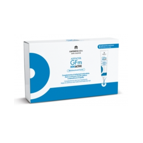Gfm ДЕНСАКТИВ е козметичен гел за локално нанасяне, с висока концентрация на GFm и кофеин, пренасяни от хиалуронова киселина, която хидратира скалпа и влакната на косата. GFm е комплекс от полипептиди, които имитират действието на ендогенните фактори на растежа и активират физиологичните фази на растеж на косата. Кофеинът помага за стимулиране на микроциркулацията по скалпа и допринася за подобряване на снабдяването с хранителни вещества.