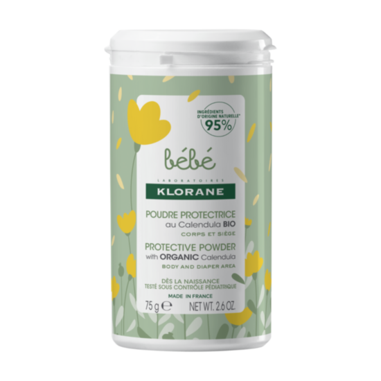 При бебетата дискомфортът в зоната на пелените е често срещан. Формулирана с 95% съставки с натурален произход и без талк, защитната пудра при смяна на пелени с органичен невен от Klorane съдържа 100% натурални пудри от ориз и царевично нишесте, които абсорбират влагата, дори в кожните гънки, помагайки да се успокои и защити деликатната кожа. Тя незабавно успокоява зачервяването и раздразнението, като същевременно подпомага баланса на микробиома на кожата.