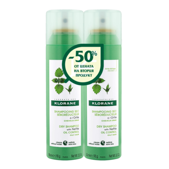 КЛОРАН КОМПЛЕКТ СУХ ШАМПОАН С КОПРИВА МАЗНА КОСА 150МЛ Х 2 А
