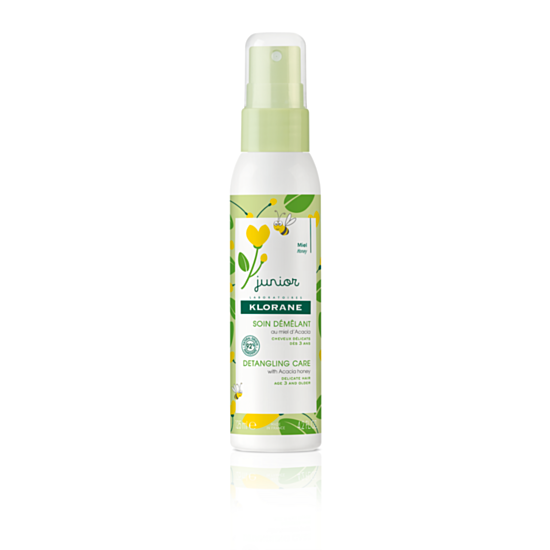 Детският спрей за разплитане на коса с Акациев мед от Клоран, разплита дори най-заплетената дълга или къдрава детска коса. Лесен и удобен за употреба, този лек спрей само с едно впръскване разплита възлите и изглажда финия детски косъм. Продуктът е хипоалергенен и съдържа натурални растителни съставки. За деца над 3-годишна възраст. Ефикасно разплита и улеснява оформянето на непокорни детски коси. Предлага се в опаковка от 125 мл.