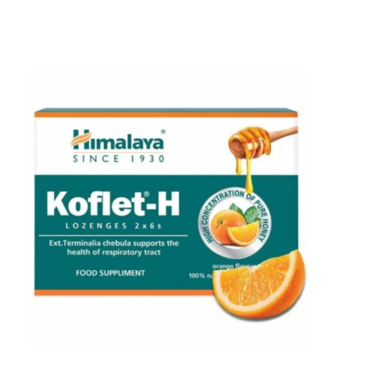 КОФЛЕТ БОНБОНИ ПОРТОКАЛ Х 10 ХИМАЛАЯ - Успокояващ гърлото, Koflet-H от Хималая подобрява функцията на дихателната система благодарение на добавената комбинацията от мед и билки. Медът успокоява дихателните пътища, подобрява имунната система и има противовъзпалително действие. Terminalia Chebula и Дълъг пипер подкрепят функциите на дихателните пътища и белия дроб. Карамфилът има антибактериални свойства и подобрява здравето на гърлото. Кофлет подпомага поддържането на нормалното състояние на лигавицата на носа, гърлото и белите дробове. Съдържа още масла от кардамон и канела, екстракти от джинджифил, черен пипер. Вкус на портокал.