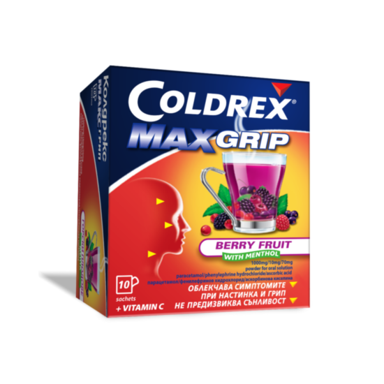 Колдрекс® МаксГрип Горски плодове 1000 mg/10 mg/70 mg прах за перорален разтвор