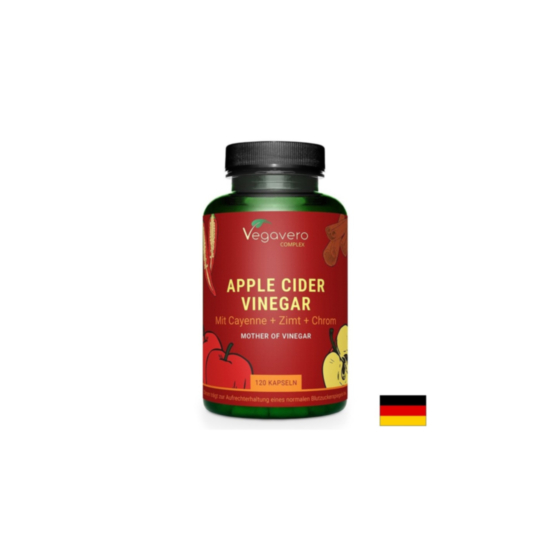Apple Cider Vinegar mit Cayenne + Zimt + Chrom / Ябълков оцет + лют червен пипер, канела и хром, 120 капсули е хранителна добавка на немската компания Vanatari International GmbH. Продуктът съдържа внимателно подбрана комбинация от активни съставки, които са известни със своите ползи за поддържане на нормално телесно тегло и оптимален глюкозен метаболизъм.