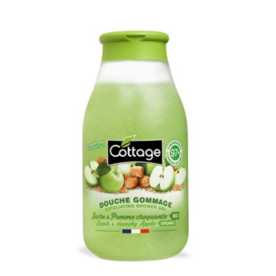 КОТАЖ ЕКСФОЛИРАЩ ДУШ ГЕЛ СЪС ЗАХАР И ЯБЪЛКА 270МЛ представлява изключително нежен ексфолиращ душ гел за тяло, подходящ за ежедневна употреба. Ексфолиращите микрочастици деликатно масажират кожата и премахват мъртви кожни клетки. Регенериращото действие на продукта възстановява мекотата на кожата и я предпазва. Формула с 97% съставки от натурален произход, обогатена със захар и органичен екстракт от ябълка. С неутрално pH, тестван под дерматологичен контрол. Продуктът нежно почиства тялото и гали сетивата с аромат кафява захар и зелена ябълка - безкрайно вкусна и свежа комбинация.