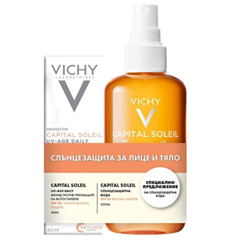 23. Vichy ВИШИ КОМПЛЕКТ SOLEIL SPF50+ UV-AGE ФЛУИД ЗА ЛИЦЕ 40МЛ+ВОДА SPF30 ЗА ПОДОБРЯВАНЕ НА ТЕНА 200МЛ 736103