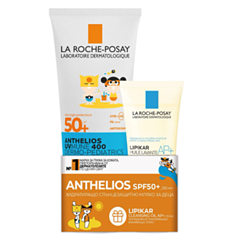 21. La Roche-Posay ЛРП КОМПЛЕКТ АНТЕЛИОС SPF50+ UVMUNE 400 МЛЯКО ЗА ДЕЦА 250МЛ+ЛИПИКАР ЛАВАНТ AP+ 100МЛ 677345 ПРОМО