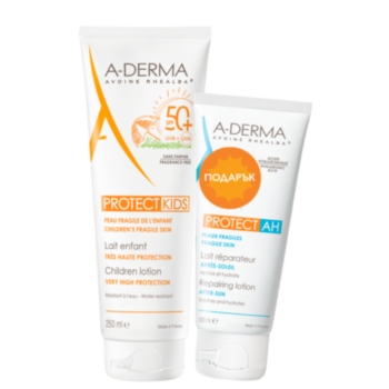 28. A-Derma А-ДЕРМА КОМПЛЕКТ СЛЪНЦЕ МЛЯКО ЗА ДЕЦА УЯЗВИМА КОЖА SPF50 250МЛ+AH ЛОСИОН ЗА СЛЕД СЛЪНЦЕ 100МЛ