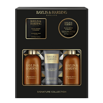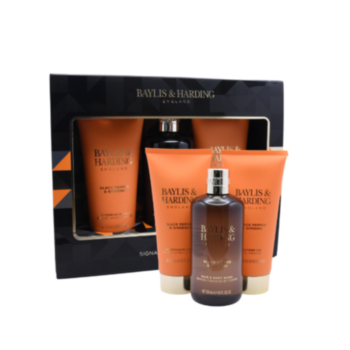 - Baylis & Harding (Англия): Scottish Fine Soaps предлага луксозна серия за мъже и мъжки комплекти, акцентирайки върху натурални съставки и изискани аромати. Продуктите им включват сапуни, душ гелове и лосиони за след бръснене, които се отличават с елегантна опаковка, идеална като мъжки комплекти за подарък.