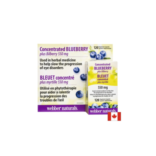 Синя + Черна боровинка на канадската компания Webber Naturals е естествен продукт подпомагащ зрението и микроциркулацията.
