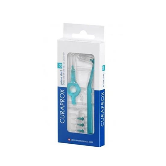 КУРАПРОКС ИНТЕРДЕНТАЛНИ ЧЕТКИ PRIME START 0.6( 5БР+ ПРАВ И КРЪГЪЛ ДЪРЖАЧ) А са 5 броя интердентални четки и два удобни държача (прав и кръгъл), на които може да се поставят. Нова клик система за удобно и хигиенично изваждане на допълнителните глави към основните държачи. Размерът на интерденталните четки е 06 (0,6 – 2,2 мм). Те почистват ефективно цялото интердентално пространство. При създаването им е използван материалът CURAL®, който представлява много тънка и здрава хирургична тел. Почистването на междузъбните зони спомага за намаляване на риска от образуване на плака и кариеси.