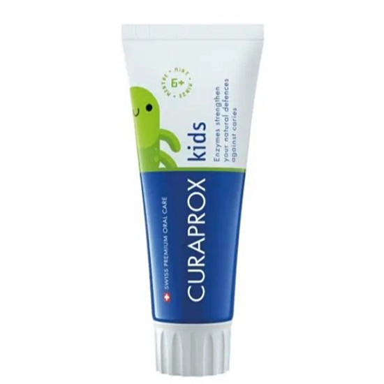 Курапрокс Паста за зъби Мента детска 6+ 60мл е висококачествена паста за зъби, разработена специално за нуждите на деца над 6 години. Грижи се за оптимална устна хигиена, предпазва от кариес и не дразни венците. Съдържа комбинация от брезова захар и два ензима, които имат мощен антибактериален ефект. Има приятен вкус на мента, който децата обожават. Съдържа флуорид. Без натриев лаурил сулфат (SLS), триклозан или микропластмаса.