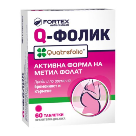 Fortex Q-фолик е висококачествена хранителна добавка и съдържа активна форма на метил фолат - Quatrefolic.