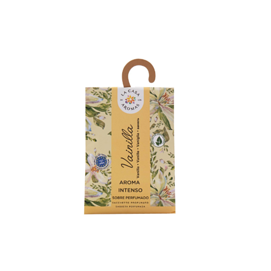 ЛА КАСА АРОМАТИЗАТОР САШЕТА ВАНИЛИЯ 13ГР. е ароматизатор саше със закачалка. Подходящ за гардероб, кола и малки помещения. Съдържанието на сашето е напоено с етерични масла за дълготрайна свежест.