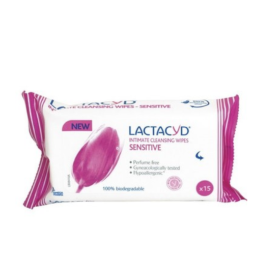 ЛАКТАЦИД ИНТИМНИ КЪРПИ СЕНЗИТИВ Х 15 - Създадени за ежедневната грижа за чувствителната интимна зона, мокрите кърпи Лактацид създават усещане за дълготрайна свежест, като придават чистота. Те охлаждат и защитават чувствителната кожа. Гинекологично тествани. Хипоалергенни. Не съдържат парфюм. Създадени от 100% биоразградими материали. Предлагат се в опаковка от 15 броя.
