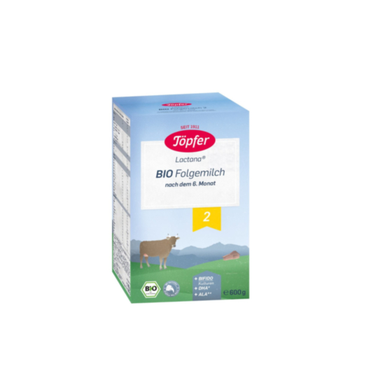 Topfer Lactana Bio 2 Baby Milk от 600 грама представлява преходно мляко за бебета над 6 месеца, което съдържа 4 вида бифидобактерии и LC-PUFA, което е подходящо след прекратяването на кърменето или ако бебето вече не се засища с Lactana Bio 1. Млякото на Тьопфер е съобразено със специфичните хранителни нужди на бебетата след 6-тия месец. То отговаря на най-високите изисквания за качество и съответства на най-новите научни познания в областта на храненето. Съдържа комплекс от 4 вида ценни Бифидобактерии, които се използват в производството на нашите млека за кърмачета и преходни млека от десетилетия. Съдържа също витамин А за имунната система, както и желязо за когнитивното развитие (съобразно изискванията на закона).