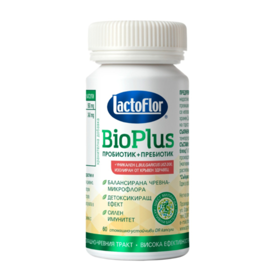 Синбиотикът Bio Plus от Lactoflor подобрява храносмилателните процеси и възстановява баланса на чревната микрофлора. Той потиска развитието на вредни бактерии и има антимикробно и противовъзпалително действие. Освен това може да се приема и за профилактика.
