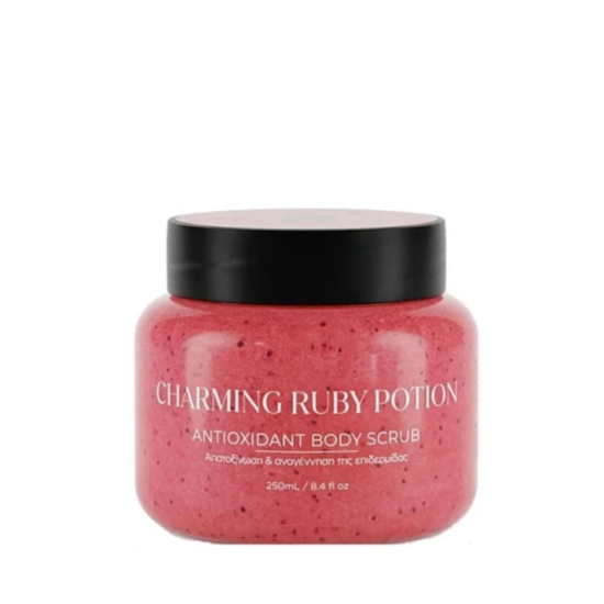 Специално разработена формула, богата на антиоксиданти и микроелементи, които стимулират процеса на обновяване и младостта на кожата, оставяйки усещане за енергия. Натурален екстракт от семена на нар с ECOCERT съответствие, почиства порите и помага за възстановяване на естествения вид и текстура на кожата. Нежен и ефективен: Нашата формула съдържа фини скраб частици, които нежно премахват мъртвите клетки и замърсяванията, оставяйки кожата ви свежа и обновена. Хидратация и подхранване: Специалната комбинация от есенциални масла и натурални съставки подхранва кожата ви, като я прави копринено мека и хидратирана. Аромат на нар: Charming Ruby Potion е вдъхновен от сладкия и сочен аромат на нар. С Lavish Care Body Scrub Charming Ruby Potion, вашият душ става истинско спа изживяване. Забравете за стреса и се потопете в луксозната грижа за кожата. Почувствайте как кожата ви става по-мека, по-гладка и нежна.
