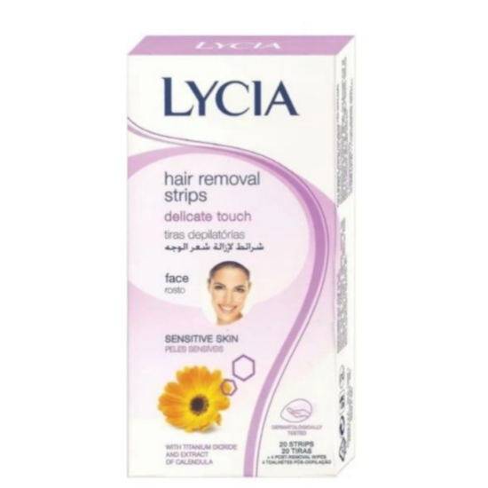 ЛИЧИЯ ЛЕНТИ ЗА ЛИЦЕ СЕНЗИТИВ Х 20  - Ако вашата кожа е чувствителна LYCIA ленти за депилация на лице за чувствителна кожа гарантирано са максимално деликатни и постигат перфектен дълготраен резултат. Това е благодарение на формулата им. Восъкът с титаниев диоксид залепва за кожата.