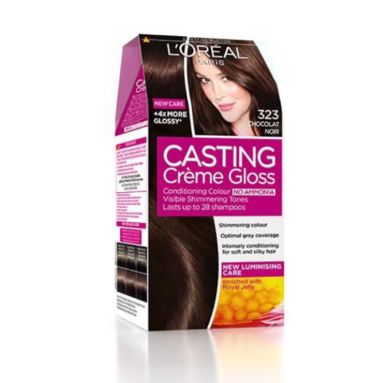 ЛОРЕАЛ БОЯ ЗА КОСА КАСТИНГ КРЕМ ГЛОС 323 е висококачествена боя за коса без амоняк. Продуктът връща естествения блясък на косата, като тя става 4 пъти по-блестяща. Резултатът от боядисването е естествен и дълготраен. Боята е добър избор при боядисване за първи път, при първите бели коси, при желание да смените цвета на косата. Продуктът обагря косата в преливащи нюанси. В същото време възстановява и освежава изцяло цвета. Съдържа и подхранващ комплекс, който защитава косъма за дълго време. Формулата е обогатена с пчелно млечице за мека и копринена коса. Боята е с приятен аромат. След боядисването подхранващият балсам с пчелно млечице подхранва косъма и обновява блясъка на цвета до следващото боядисване.