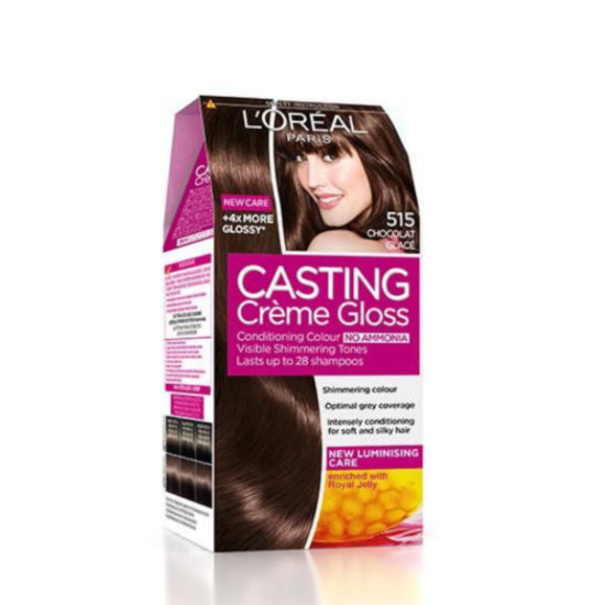 ЛОРЕАЛ БОЯ ЗА КОСА КАСТИНГ КРЕМ ГЛОС 515 - Боята за коса L’Oreal Casting Crème Gloss е без амоняк, което я прави изключително щадяща към косата. Издържа до 28 измивания с шампоан и оптимално покрива първите бели коси. Придава на косата неповторим блясък, сияен цвят и жизненост. Предлага се с меден балсам, който подхранва в дълбочина и има силно омекотяващо действие.