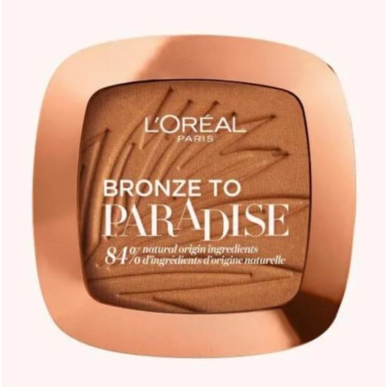 L’Oreal Bronze to Paradise Matte Bronzing Powder 03 е висококачествена бронзираща пудра за лице. Лореал Бронз ту Парадайз Бронзираща пудра 03 се отличава със своята лека прахообразна текстура, която придава матово покритие на кожата без блясък. Пудрата съдържа наситени пигменти, осигуряващи дълготрайно покритие. Пудрата е подходяща както за цялото лице, така и само за подчертаване на контурите му. Със свеж летен аромат. Специалната формула включва 84% натурални съставки. Сред тях са кокосово масло, масло от манго и от какао. Те хидратират, подхранват, омекотяват и подмладяват кожата. За всеки тип кожа.