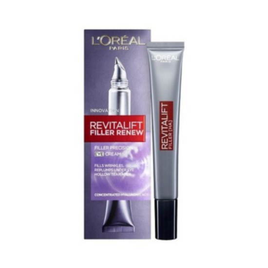ЛОРЕАЛ ДЕРМО РЕВИТАЛИФТ ФИЛЪР ОКОЛООЧЕН КРЕМ 15МЛ е продукт създаден за да коригира бръчките и загубата на плътност в деликатната зона около очите. Формулата му е снабдена с висока концентрация на хиалуронова киселина за максимална хидратация. При ежедневна употреба торбичките са намалени, а околоочния контур е по-гладък и плътен. Околоочният крем заличава фините линии и възвръща изгубения обем. Също така интензивно овлажнява, правейки кожата по-еластична и стегната. Дерматологично тестван продукт.