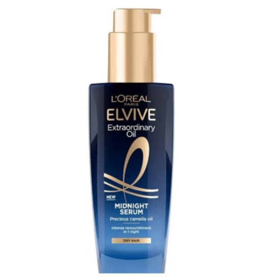 ЛОРЕАЛ ЕЛСЕВ ЕКСТРАОРДИНАРИ СЕРУМ ЗА КОСА 100МЛ е нощен серум, разработен за нуждите на сухата коса. Той интензивно подхранва косъма, само за 1 нощ и осигурява до 96 часа контрол на неприятното хвърчене. На сутринта косата е мека, силна и блестяща. Иновативната текстура на серума се трансформира от кремообразна в течна, която не лепне, не утежнява косата и не оставя следи по възглавница. Формулата е обогатена с масло от камелия, което интензивно подхранва уязвимите части от фибрите на косъма. То укрепва косата и ѝ придава блясък и мекота. В състава си, серумът съдържа масло от марула, което подхранва и заздравява косъма. Вложен е и екстракт от цвят на шипка, който притежава хидратиращи свойства. Добавен е и екстракт от гардения (тиаре), който възстановява блясъка на косата.