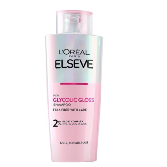 ЛОРЕАЛ ЕЛСЕВ GLYCOLIC GLOSS ШАМПОАН ЗА КОСА 200МЛ е шампоан за пореста коса (с висока порьозност) и без блясък. Той осигурява трансформация, която трае до 10 измивания. Формулата прониква в дълбочина, възстановява кутикула и го запечатва, придавайки му блясък. Грижовната формула на шампоана е обогатена с 2% Gloss Complex, съдържащ гликолова киселина, която изравнява и заглажда повърхността на косъма. Освен това придава на косата интензивен и дълготраен блясък.