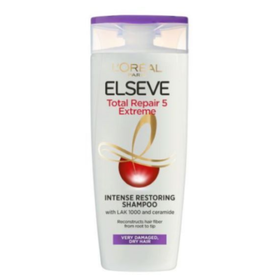 ЛОРЕАЛ ЕЛСЕВ ШАМПОАН ТОТАЛ РИПЕЪР 5 ЕКСТРИЙМ 250 МЛ * е иновативно разработен продукт за изключително увредена и суха коса, предназначен за ежедневна употреба, който придава нежна мекота и напълно възстановява структурата на косъма. Неговата формула със серамиди и LAK 1000 притежава способността да прониква дълбоко до 10-ти слой на косъма, за да възстанови вътрешната му структура. Действа и в краищата на косъма като запълва цепнатините и ги заздравява до последния милиметър. По този начин косата е подсилена и подхранена от вътре, жизнена и бляскава от вън. Лореал Елсев Тотал Рипеър Екстрийм Шампоан улеснява разресването и ѝ придава мекота и прекрасен аромат. Дерматологично тестван продукт.
