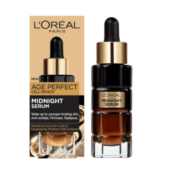 ЛОРЕАЛ ЕЙДЖ ПЕРФЕКТ СЕРУМ 30МЛ e нощен серум за лице, който регенерира и подхранва в дълбочина кожата. Подходящ е за всеки тип кожа, включително и чувствителната. Той помага за разкриване на нови повърхностни клетки, за видимо по-стегната, гладка и сияйна кожа. Уникалната му формула съдържа антиоксидантен възстановителен комплекс, който насърчава обновяването на клетките. Серума комбинира 2 мощни антиоксиданта: неохеспердин (патентован антиоксидант от L'Oréal), който е извлечен от горчив портокал и витамин Е, който повишава защитата срещу увреждане от свободните радикали. Формулата съдържа още хиалуронова киселина - съставка, добре известна със своите хидратиращи свойства, която помага за задържане на влагата в кожата. С лека тексура, която не лепне и не омазнява. Без парабени и минерални масла.