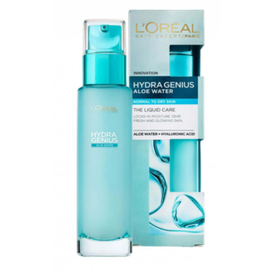 ЛОРЕАЛ ХИДРА ДЖИНИЪС ХИДРАТИРАЩ ГЕЛ ЗА НОРМАЛНА ДО СУХА КОЖА 70МЛ * - Хидратиращ флуид, който е предназначен за нормална към суха кожа и е обогатен с вода с алое. Леката текстура прониква моментално в дълбочина и овлажнява изсушените зони, подобрява еластичността им и запазва постигнатия резултат в продължение на 72 часа. Съдържащите се активни съставки действат изключително благоприятно и възстановяват изгубената свежест, тонус и сияйност. Същевременно успокояват раздразнените зони и предотвратяват образуването на несъвършенства. След използване лицето е хидратирано, обновено и с усещане за комфорт и лекота.