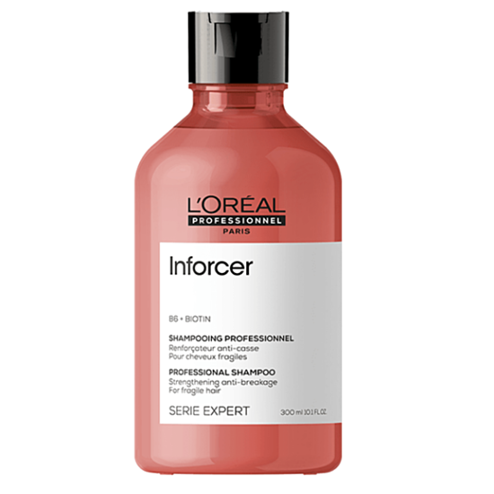 ЛОРЕАЛ ПРОФ. ИНФОРСЕР ШАМПОАН П/В НАКЪСВАНЕ 300МЛ е шампоан за заздравяване на увредена и накъсана коса. Подсилва косъма от корена до върха, предотвратява накъсването и заплитането на краищата. Прави косата по-силна, устойчива и защитена при третиране. Подобрява еластичността на косъма и възвръща здравия вид на косата, като й придава блясък и мекота.