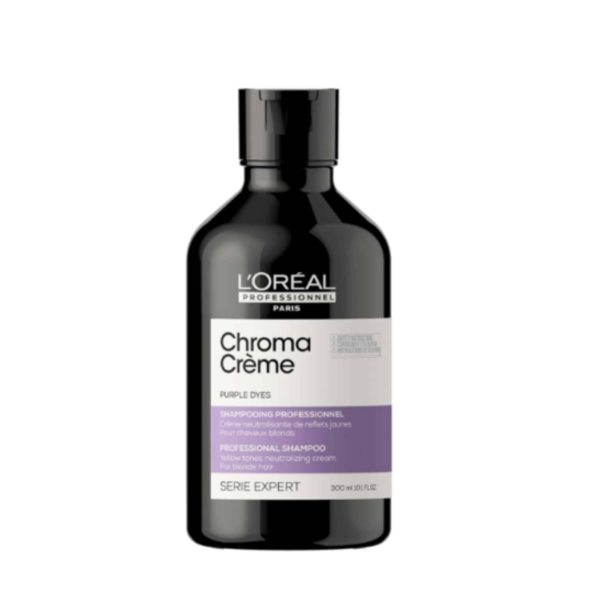 ЛОРЕАЛ ПРОФ. КРЕМ-ШАМПОАН ХРОМА НЕУТРАЛИЗИРАЩ ЖЪЛТИТЕ НЮАНСИ ЗА РУСА КОСА 300МЛ е шампоан, който се отличава с кремообразна текстура и подхранващо съдържание. Това е благодарение на професионално калибрираните лилави пигменти, които намаляват нежеланите топли нюанси. При редовна употреба ще се сдобиете с лъскава руса коса без жълти нотки. Шампоана нежно почиства косата от замърсявания, подхранва я, като в същото време я оставя мека и нежна на допир.