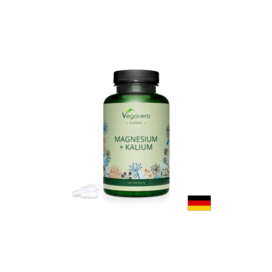 Magnesium + Kalium на немската компания Vegavero е специално разработена формула с оптимално съдържание на силно биоактивни форми на магнезий (три-магнезиев ди-цитрат) и калий (три-калиев цитрат-монохидрат), за оптималното състояние на сърдечно-съдовата и нервната система.