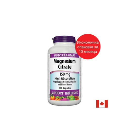 Магнезий цитрат е естествен продукт, източник на магнезий с максимална степен на усвояване на канадската компания Webber Naturals. Допринася за поддържане на нормално състояние на метаболизма на въглехидратите, мазнините и белтъчините/протеините.