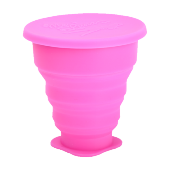 Стерилизация на менструалната чашка се препоръчва преди и след всеки менструален цикъл. Най – удобно това става като се използва сгъваема, дезинфекцираща чаша Me Luna. Тя е специално проектирана за дезинфекция на менструална чашка в микровълнова. Произведена е от безопасен за храната и подходящ за микровълнова фурна силикон. Не заема много място при сгънато положение и е много подходяща за жени водещи активен начин на живот.