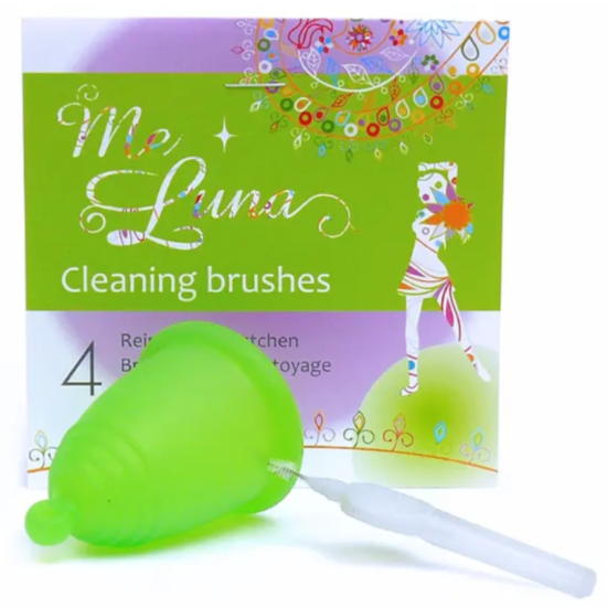 Ако след дълга употреба, Me Luna има нужда от почистване , четчиците за почистване ще Ви помогнат да достигнете до трудно достъпни места на менструалната чашка.