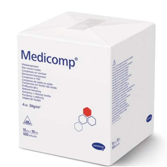 ХАРТМАН МЕДИКОМП КОМПРЕС НЕСТЕРИЛЕН 10СМ/10СМ Х 100БР - Нетъкани тампони с подобна на марля структура / Хартман Медикомп нестерилни компреси 10 см. / 10 см. * 100. Без свързващи агенти и оптични избелители, силно абсорбиращи, меки и дишащи, нестерилни с 4 пласта.