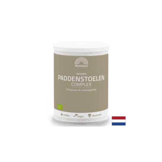 Organic Paddenstoelen Complex на нидерландската компания Mattisson Healthstyle допринася за подобряване на цялостното състояние на организма, благодарение на комплексното действие на медицинските гъби лъвска грива, рейши, кордицепс, чага, майтаке, шийтаке и агарикус. Тези уникални растения подпомагат устойчивостта на тялото към факторите на околната среда и осигуряват подкрепа при понижен имунитет и хронична умора.
