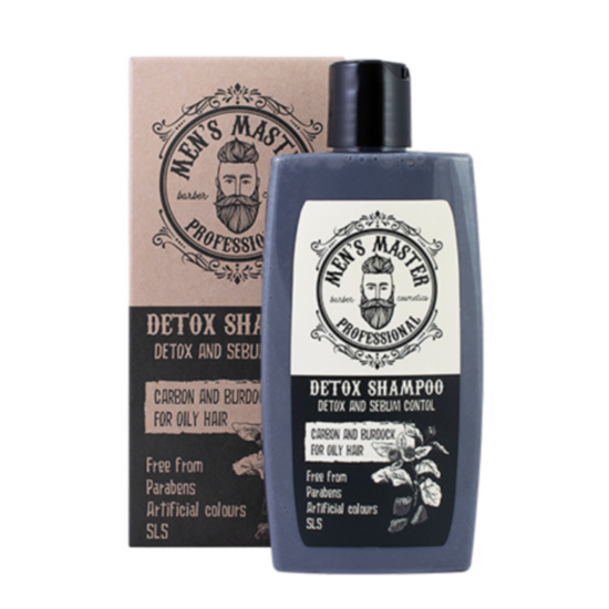 Мен Мастър шампоан за мазна коса с детокс ефект 260мл е шампоан за предотвратяване и намаляване на пърхота и на косопада. Подходящ за мазна кожа на главата. Безсулфатен шампоан с пироктон оламин, минерали и репей за стимулиране растежа на косата и борба с пърхота. Активният въглен и хумата детоксикират, спомагат за пилинг ефект и регулиране на мастната секреция.