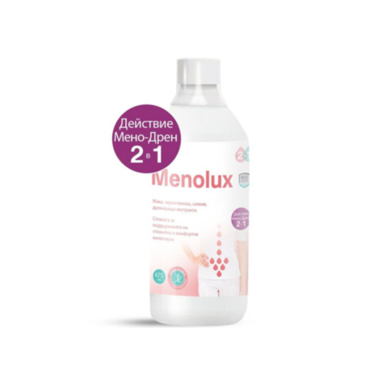 Менолукс е хранителна добавка за жени в менопауза. Помага за облекчаване на характерните симптоми, като горещи вълни, потене, тревожност, раздразнение и съдейства за освобождаване на излишните течности и мазнини в организма. За спокойна и комфортна менопауза.