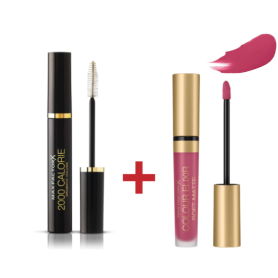 МАКС ФАКТОР КОМПЛЕКТ СПИРАЛА 2000 КАЛОРИИ ЧЕРНO KAФЯВА 9МЛ + ТЕЧНО ЧЕРВИЛО SOFT MATTE 020 /25563+56206/