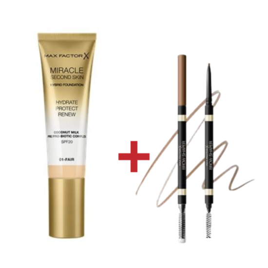 МАКС ФАКТОР КОМПЛЕКТ ФДТ МИРИКЪЛ ТЪЧ СКИН ПЕРФЕКТОР 001 + МОЛИВ ЗА ВЕЖДИ БРАУН ШЕЙПЪР 10 /82535+74808/