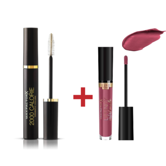 МАКС ФАКТОР КОМПЛЕКТ СПИРАЛА 2000 КАЛОРИИ ЧЕРНO KAФЯВА 9МЛ + ЧЕРВИЛО ЛИПФИНИТИ ВЕЛВЕТ МАТ 050 /25563+79107/